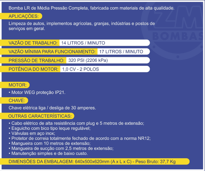 Bomba LR de Média Pressão Completa, fabricada com materiais de alta qualidade.